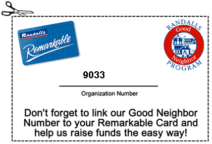 - Randall's -- Thanks to Randall's Good Neighbor Program, when you shop at Randall's and use Code #9033 with your Remarkable Card, a portion of your