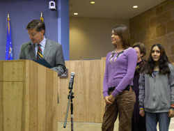 Mayor Will Wynn, Estelle Garza and Krystella Rangel. |